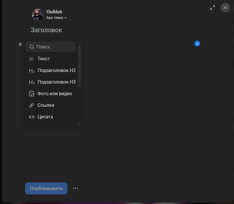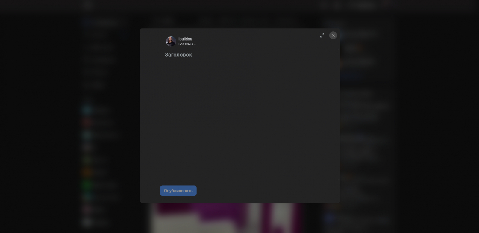 Для перехода в редактор нужно нажать на кнопку «Написать». Находится она в верхней правой части экрана. Редактор открывается в формате модального окна: