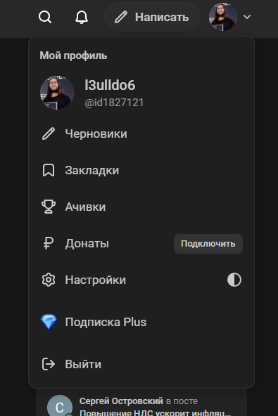Тут самый сложный и простой одновременно сценарий. Предположим, что вы снова находитесь на вашей странице и по привычке кликаете в правый верхний угол: