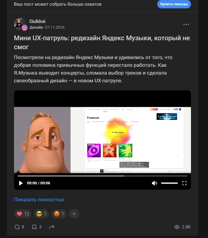 Единственное, число «просмотров» снизу справа не соответствует действительности. Точнее, оно выводит именно «показы» в ленте, а не «просмотры» самой статьи. Зачем это было сделано?