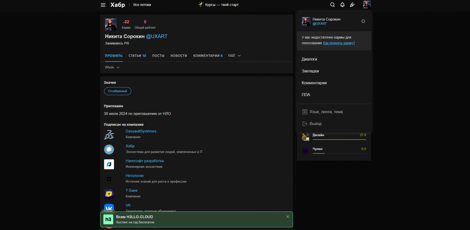 Притом само разделение на «состояние» ваших статей акцентно. И здесь я отдаю предпочтение именно Хабру. Мне нравится, что сразу на странице автора вы можете увидеть как уже выпущенные материалы, так и черновики с «запланированными статьями».
