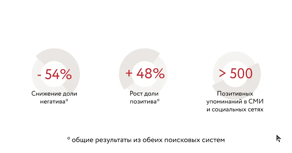 Если перечисленные три метрики имеют позитивную динамику, можно говорить о том, что управление репутацией проводится эффективно.
