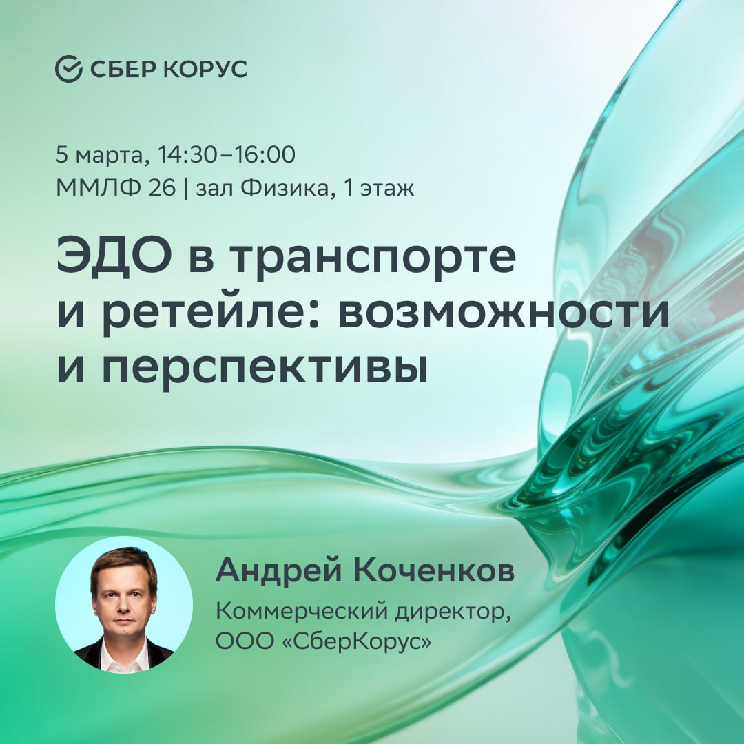 5 марта, на площадке мероприятия в кластере «Ломоносов», с 14:30 до 16:00 в зале «Физика» коммерческий директор СберКорус Андрей Коченков расскажет об ЭДО в транспорте и цепочках поставок в ретейле.