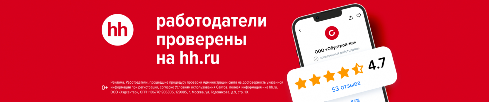 Рекламу настраивали на мужчин и женщин с ограничением возрастной группы 18–55. В процессе запуска использовали единые креативы в брендовом цвете с текстом: «Работодатели проверены на hh.ru».