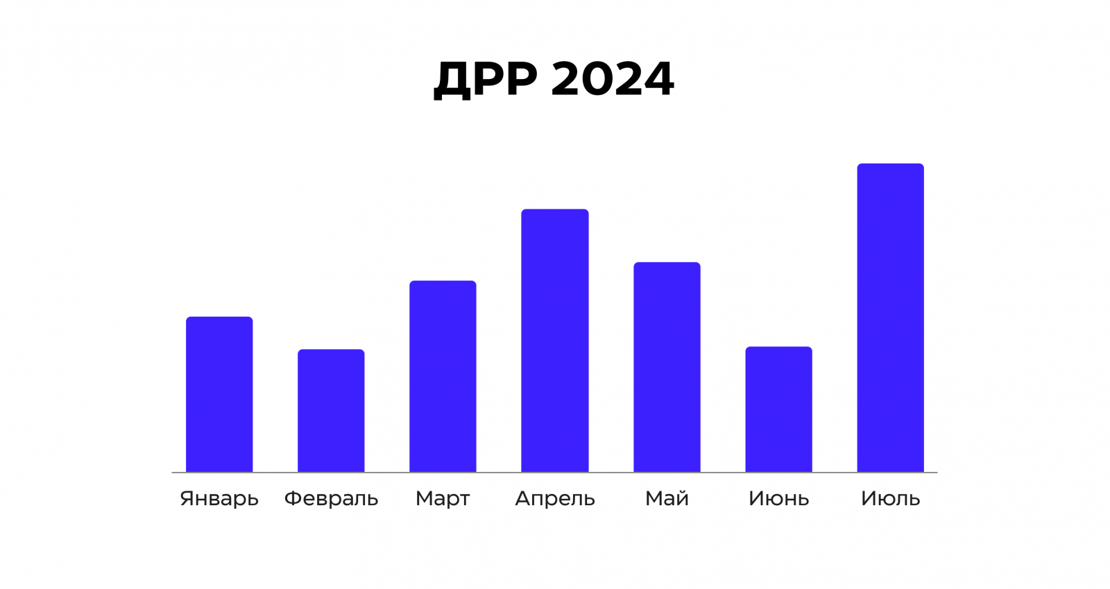 В июле 2024 года в небрендовых кампаниях Группы Самолет мы заметили рост ДРР — он увеличился на 138% по сравнению с июнем. И дальше по нашим прогнозам эта динамика только ускорилась бы.
