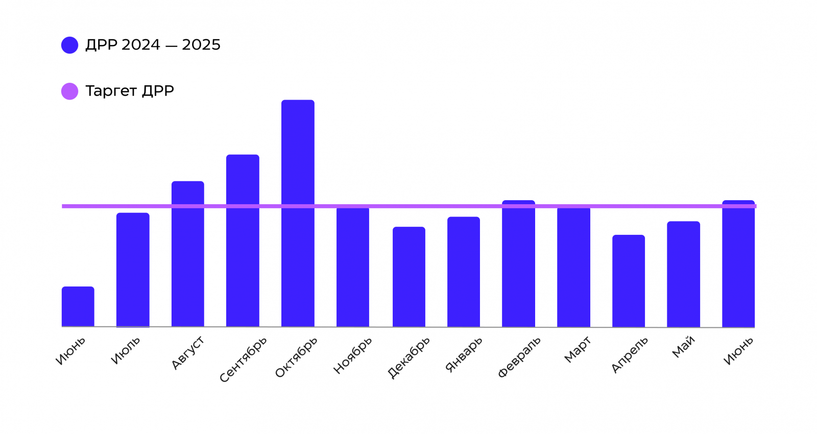 В 2025 году продолжаем активную работу над сетевыми кампаниями и сохраняем динамику ДРР на одном уровне.