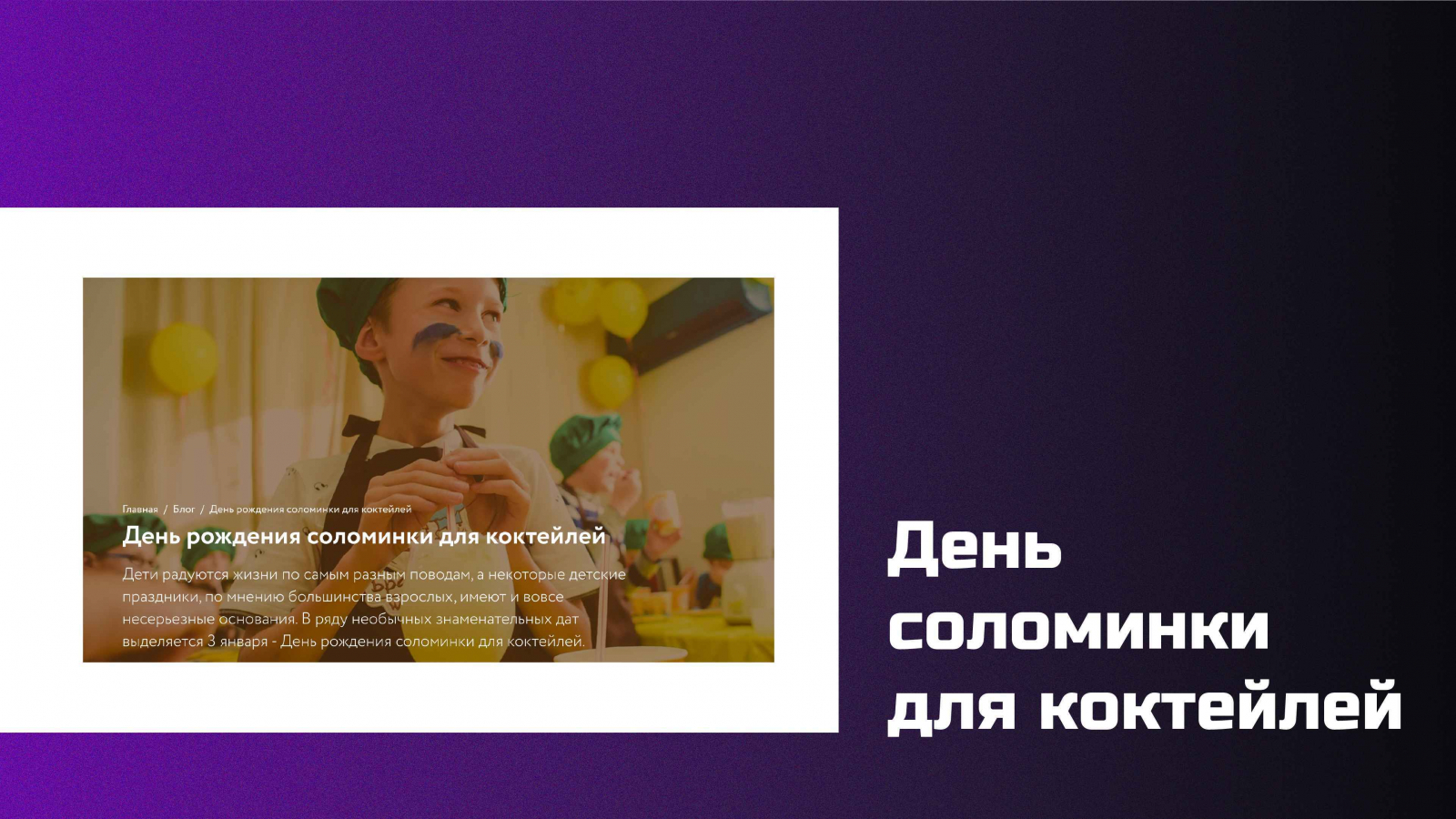 Если когда-нибудь решишь погуглить День соломинки для коктейлей, в выдаче сразу увидишь агентство детских праздников. Ловко они придумали.