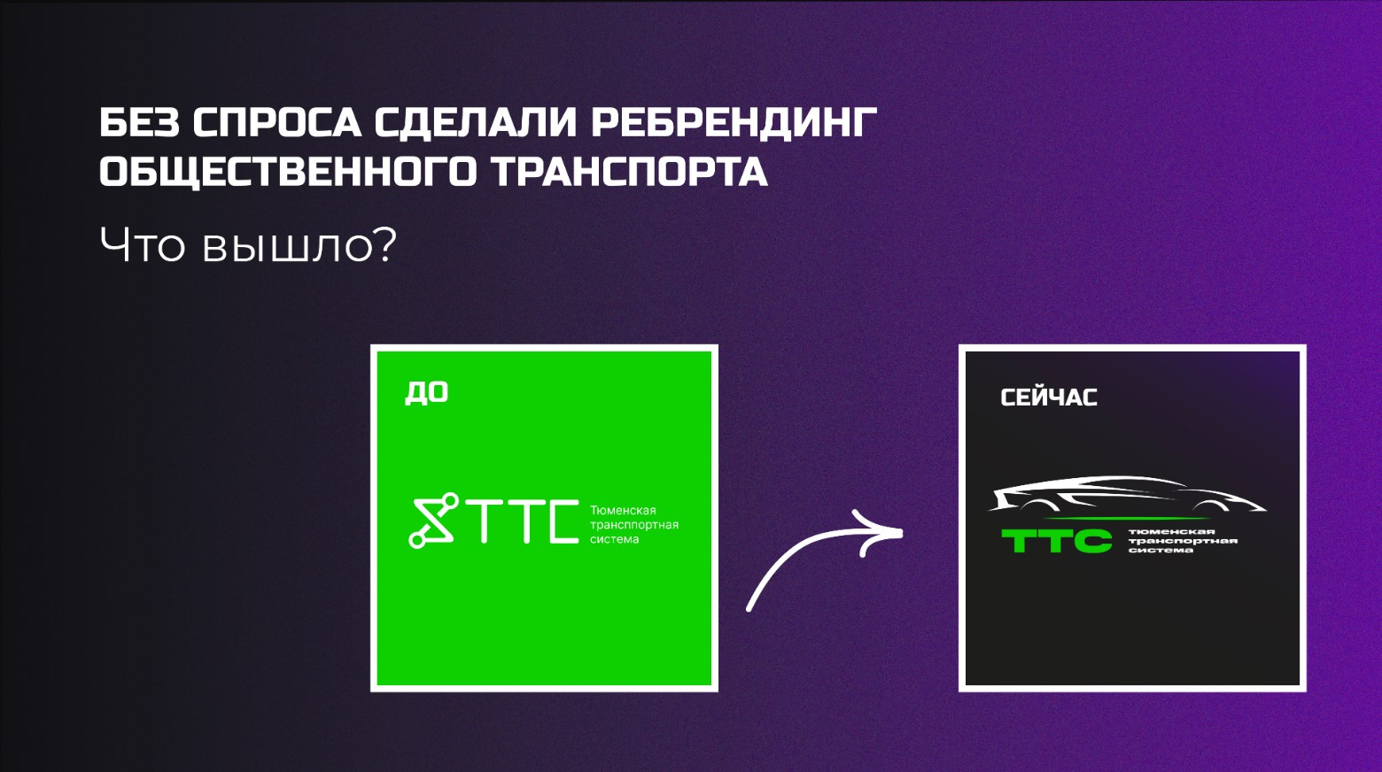 В исходной версии логотипа Тюменской транспортной системы (ТТС) использовалась минималистичная графика с нейтральными формами. Но новая версия — это настоящая революция. Да, яркий зеленый с посылом экологичности и современности остался. Но контрастный черный фон придал ему динамику и мощность.