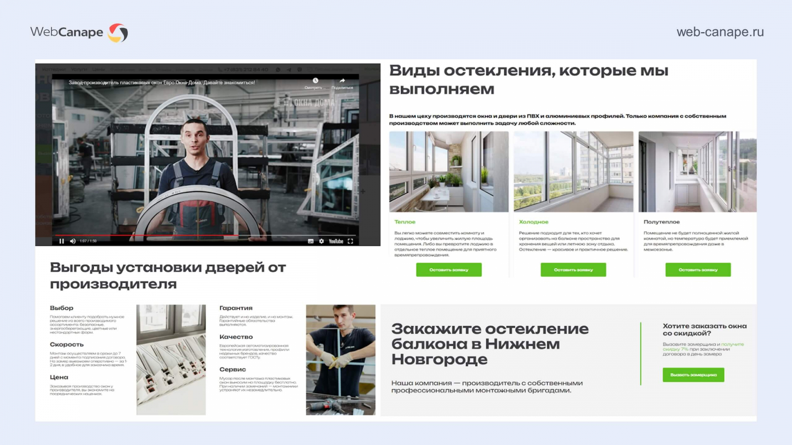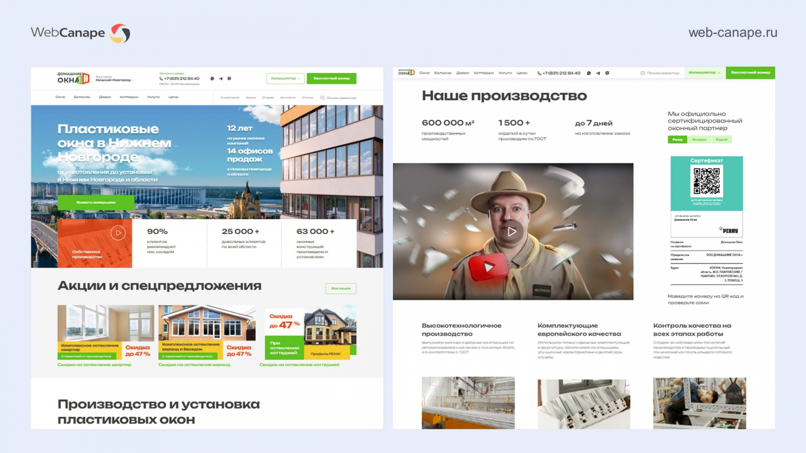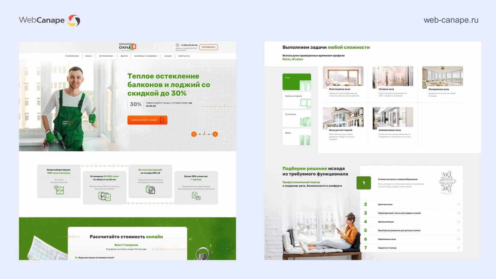 Одна из наших специализаций — это разработка и продвижение сайтов оконных компаний. Рынок пластиковых окон очень конкурентный, там непросто продвигаться в любом регионе. В свое время сеошники мерялись мастерством именно на примере оконных сайтов. И мы в WebCanape одни из таких, запустили более 30 сайтов в оконной тематике, несколько проектов вывели на уровень топовых компаний: