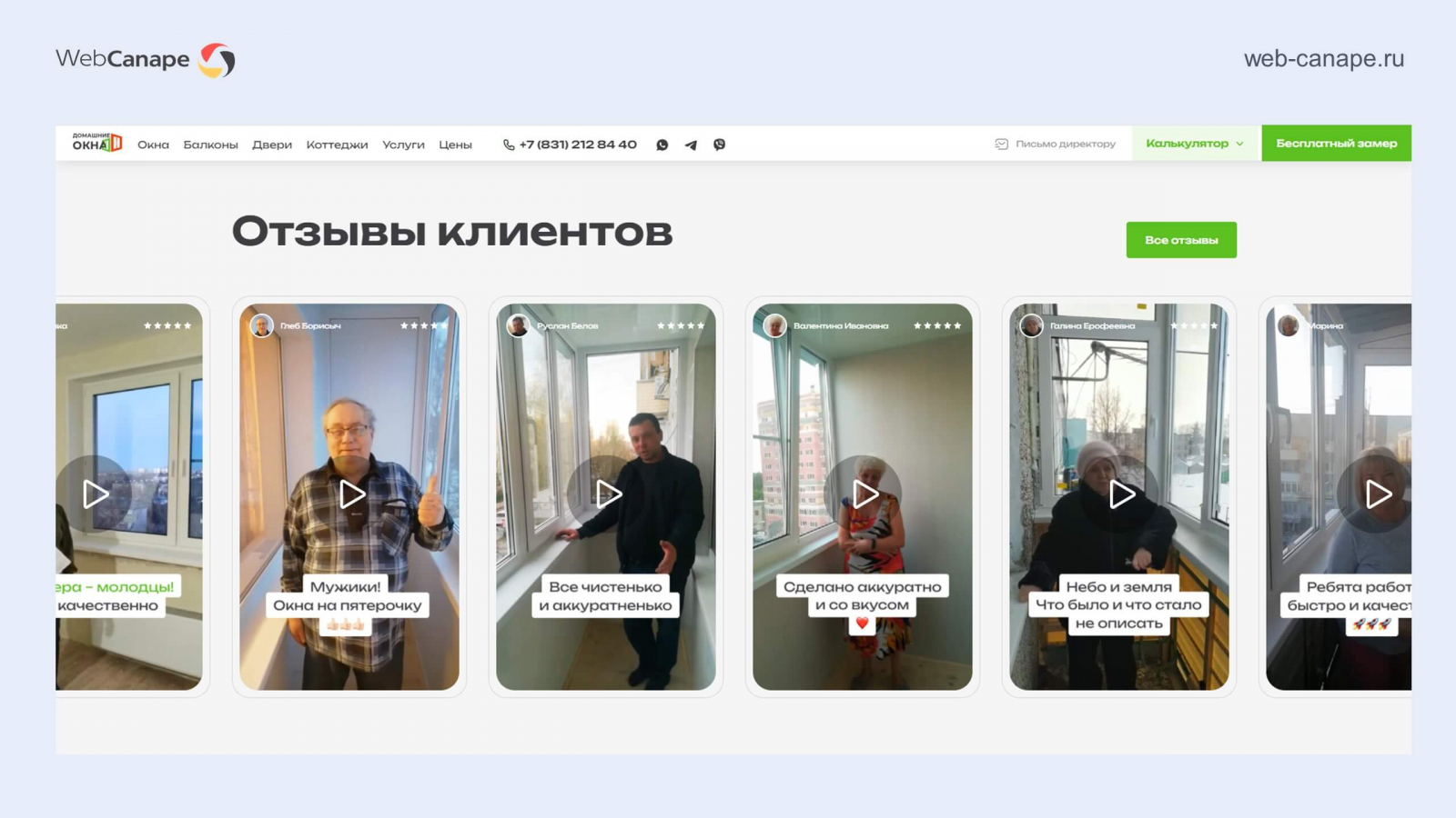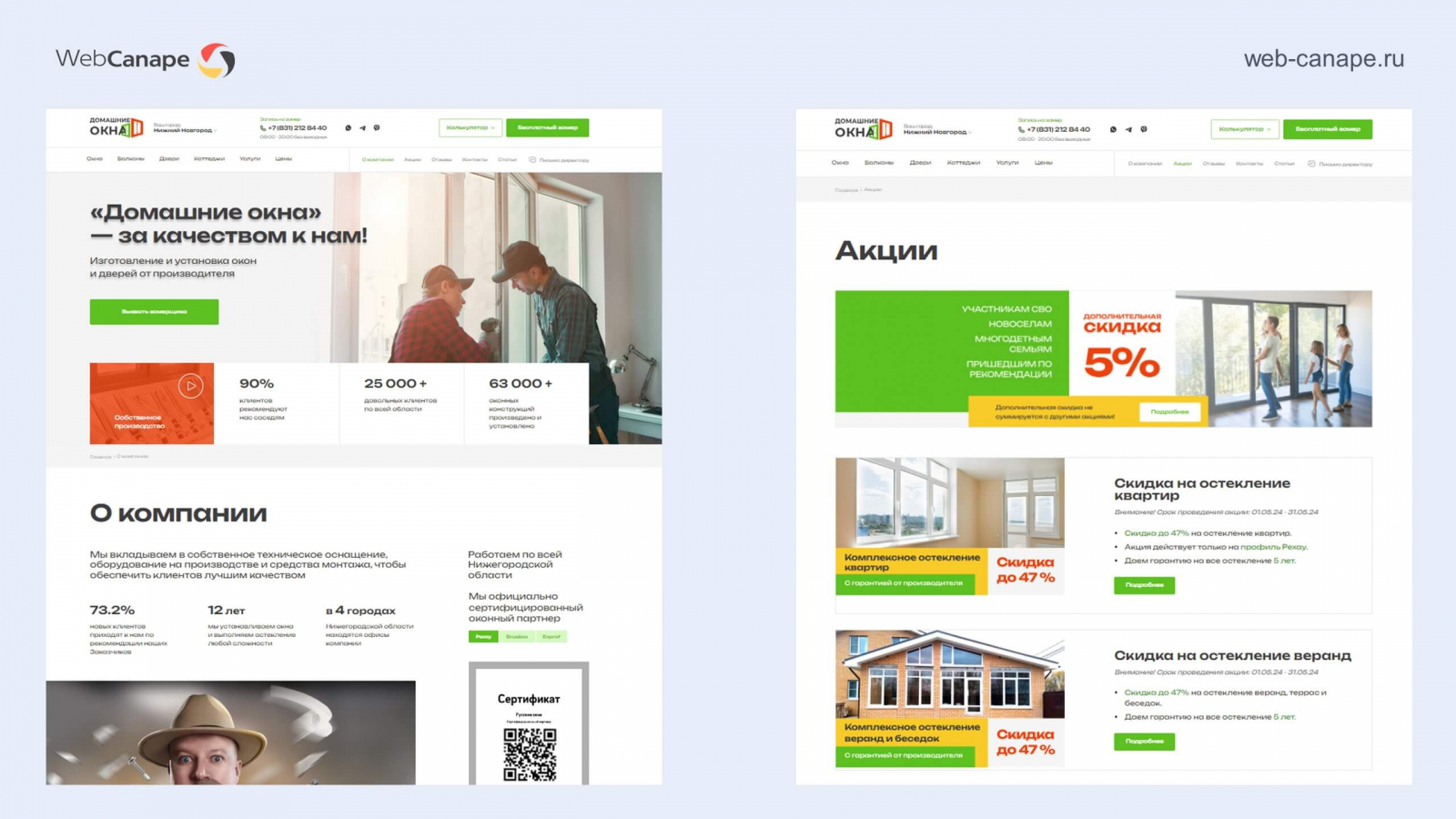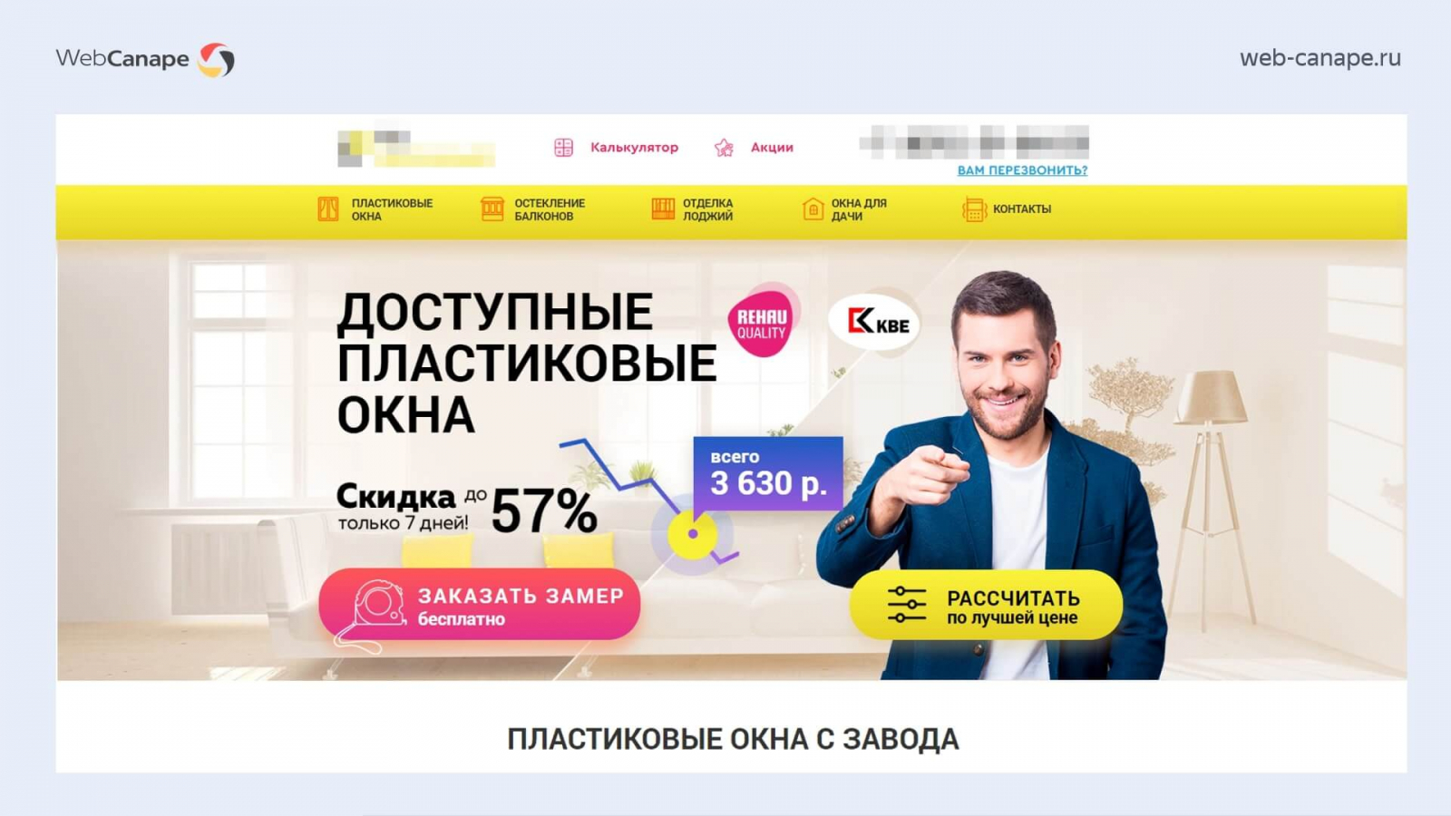 Одна из наших специализаций — это разработка и продвижение сайтов оконных компаний. Рынок пластиковых окон очень конкурентный, там непросто продвигаться в любом регионе. В свое время сеошники мерялись мастерством именно на примере оконных сайтов. И мы в WebCanape одни из таких, запустили более 30 сайтов в оконной тематике, несколько проектов вывели на уровень топовых компаний: