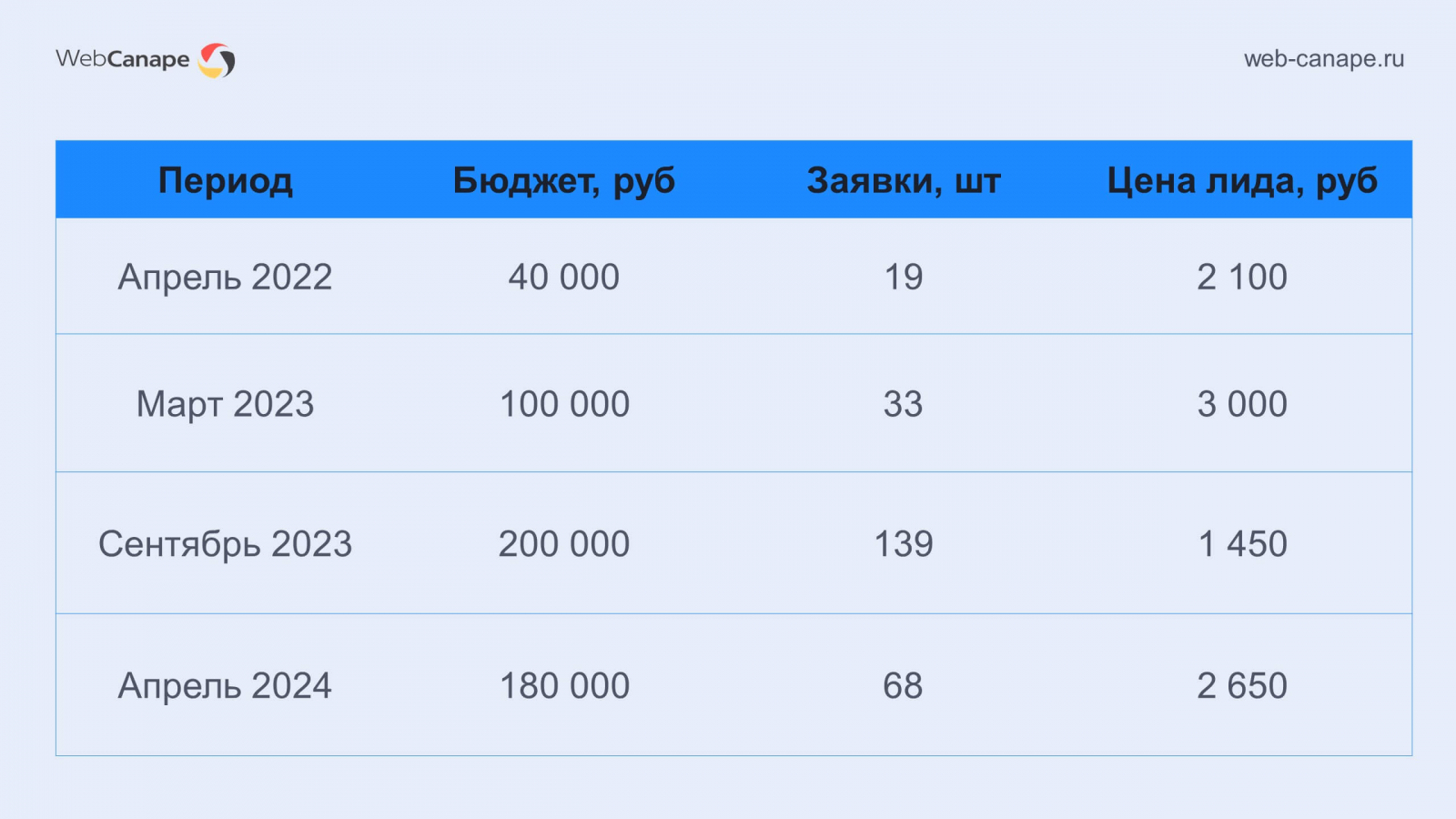 За первые полгода ведения рекламы мы увеличили количество заявок в 4 раза и снизили их цену в 2 раза, несмотря на рост конкуренции с 2022 года.
