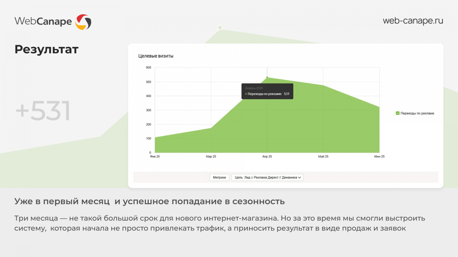 Три месяца — не такой большой срок для нового интернет-магазина. Но за это время мы смогли выстроить систему, которая начала не просто привлекать трафик, а приносить результат в виде продаж и заявок.