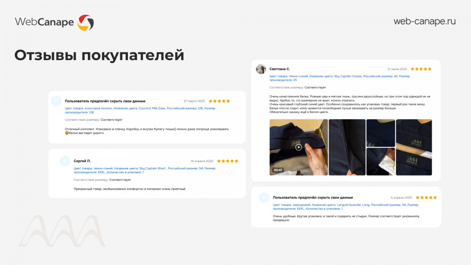 Особенно важны отзывы на старте. Когда карточка новая, она не вызывает доверия — нет ни рейтинга, ни подтверждения, что товар покупают. Поэтому и нужно не просто попасть в выдачу, а получить хотя бы минимальное количество оценок, чтобы ускорить оборачиваемость и дать карточке шанс закрепиться в ранжировании.