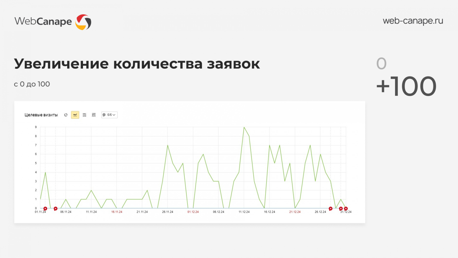 В течение двух месяцев стабильно увеличивалось количество заявок — с 0 до 100, и это на сложном B2B-рынке.