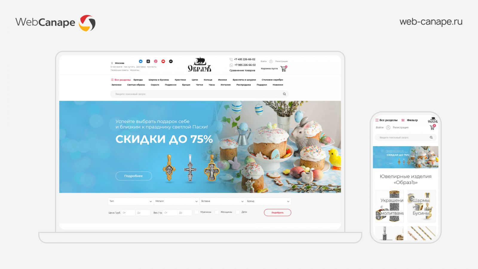 Интернет-магазин «Образъ» — это огромный ассортимент православных украшений из драгоценных металлов. Мы давно занимаемся платным трафиком для этого проекта — запускаем контекстную рекламу на поиске и в РСЯ, делая упор на товарные рекламные кампании для высокомаржинальных позиций из ассортимента. В конце 2023 года в Яндексе появился новый инструмент — единая перфоманс-кампания или ЕПК. И уже в январе 2024, еще на этапе beta-теста, мы сразу использовали возможность попробовать ее на практике.