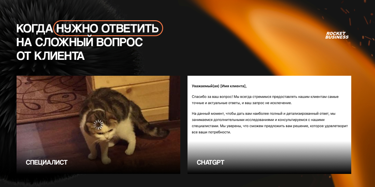 Нейросети не предназначены для того, чтобы заменять людей. Их главная задача — автоматизировать рутинные процессы и помогать сотрудникам. Команде Rocket Business технологии помогают работать быстрее, а еще освобождают время на реализацию более креативных задач и кейсов. Так что восстание машин откладывается на неопределенный срок, а последнее слово все равно остается за человеком.