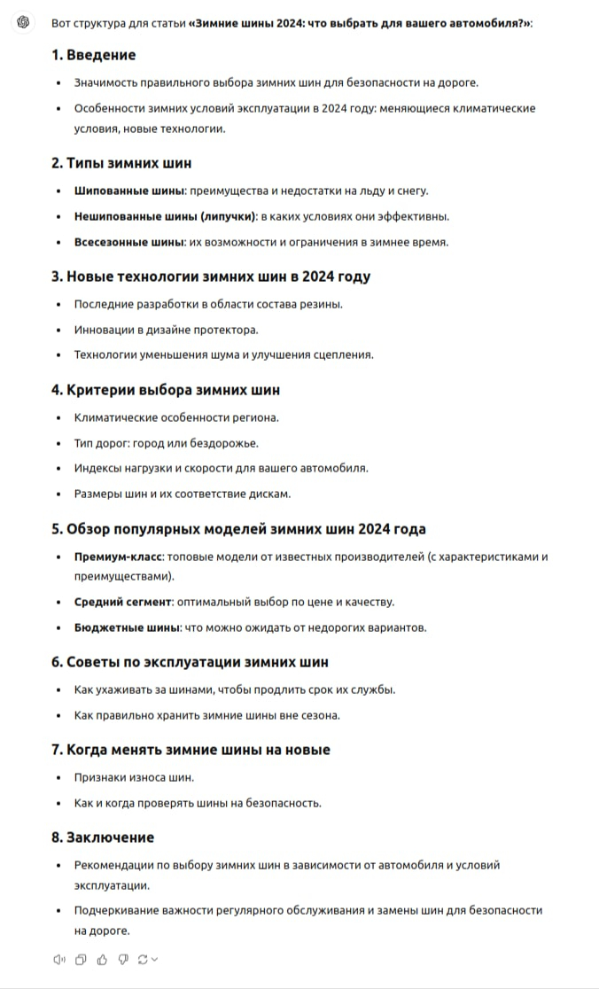 В первую очередь ИИ помогает определиться со структурой статьи, основными тезисами, подсказывает, как оформить вступление или заключение статьи.