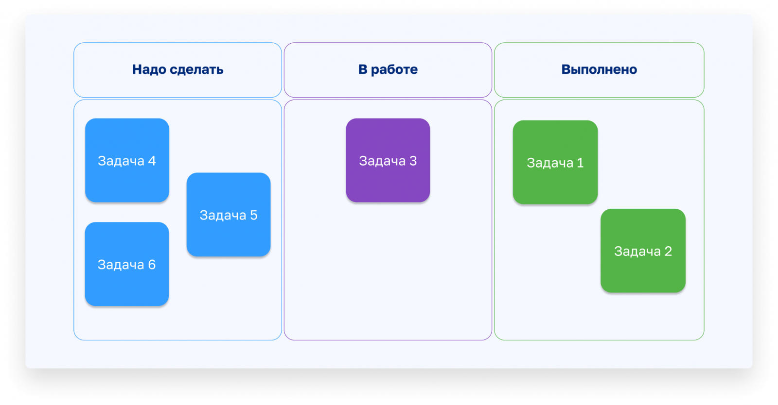 Часто используется столбец Backlog (“Бэклог”) – он означает общее количество задач к выполнению, которые оттуда переносятся в To Do (“Сделать”): если так произошло, значит, задача нужна в скором времени и ее пора брать в работу.