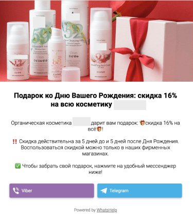 – Далее подписчику приходит цепочка заранее запланированных сообщений, которые отправлялись каждый день в течении 5 дней. В сообщениях, мы напоминали про подарки и консультацию, присылали полезные советы по уходу за кожей и знакомили с компанией.