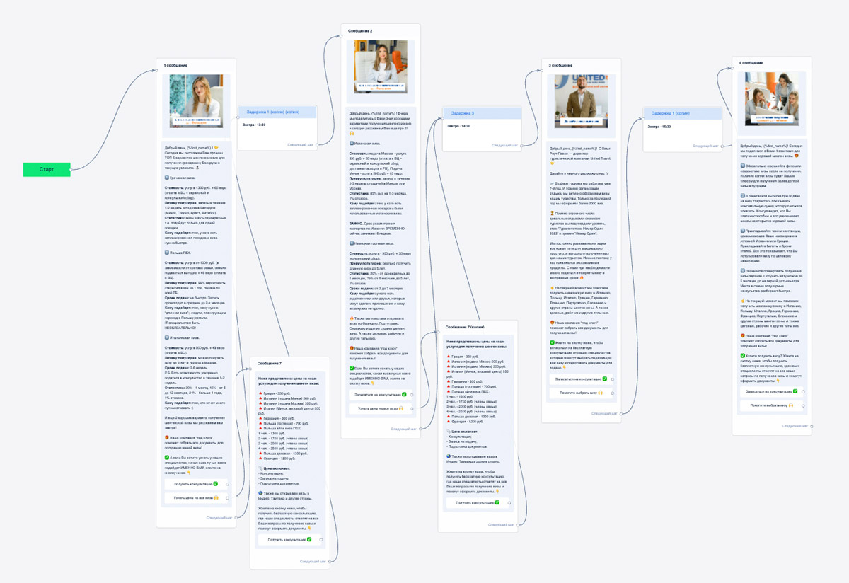 В этой статье мы рассмотрим, как сделать эффективную автоворонку в мессенджерах (чат-бота) для туристического агентства (визового агентства) с целью привлечения заявок.