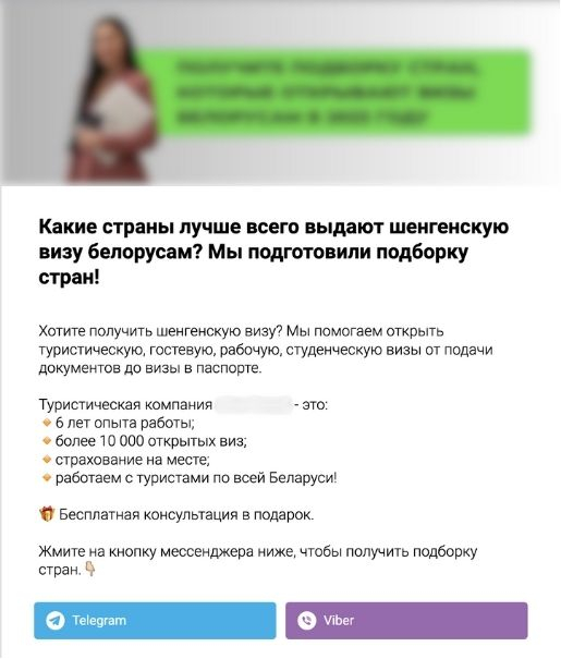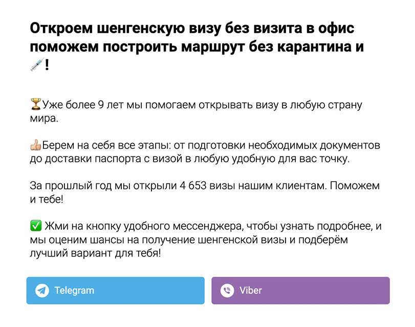 — бесплатная консультация специалиста. Это можно подать по-разному: бесплатная оценка шансов на получение визы или бесплатный подбор визы от специалиста. Пример: