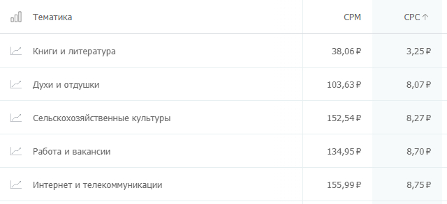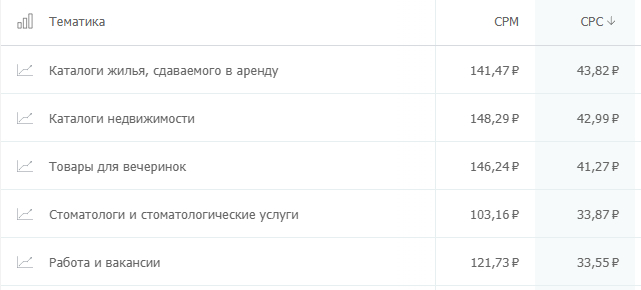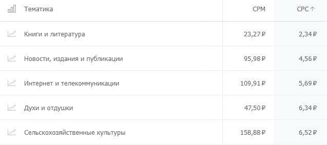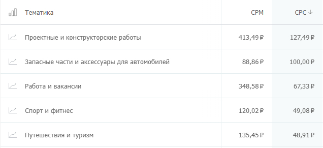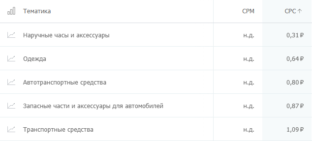 А все клики из топ-5 самых дешевых тематик стоят меньше 1 рубля. Обратите внимание, что здесь представлены довольно популярные ниши.