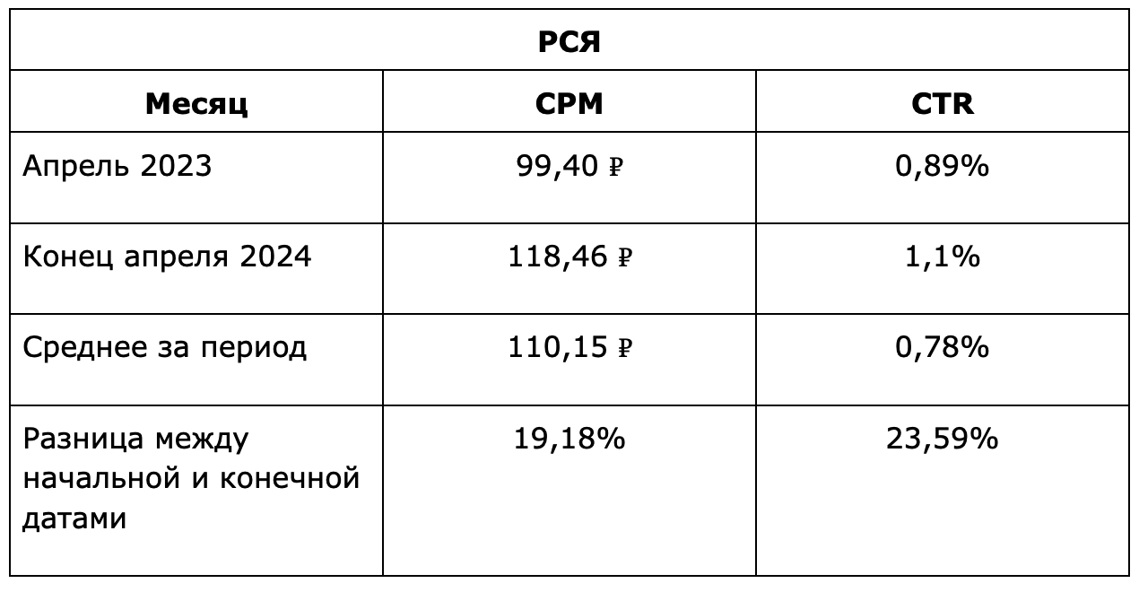На момент 1 апреля 2023 показатель CPC составлял 9,74 ₽.