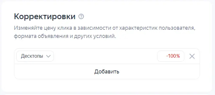 1. «Оплата по фиксированной цене конверсии». В таком случае все заданные корректировки применяются к стоимости конверсии, а не клика.