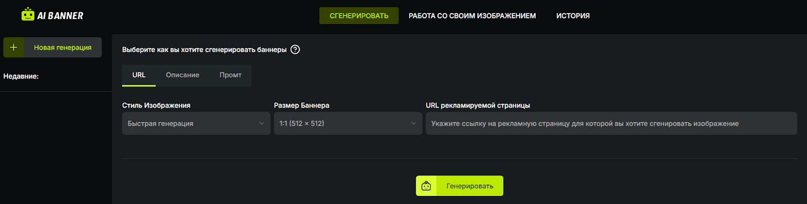 AI Banner — инструмент, который сделает картинку не только по текстовому описанию, но и по ссылке на целевую страницу. Это первый генератор в России, в котором можно выделить часть изображения и указать, на что ее нужно заменить — уже через несколько секунд нейросеть выполнит ваш запрос. И так можно менять изначальную картинку неограниченное количество раз.