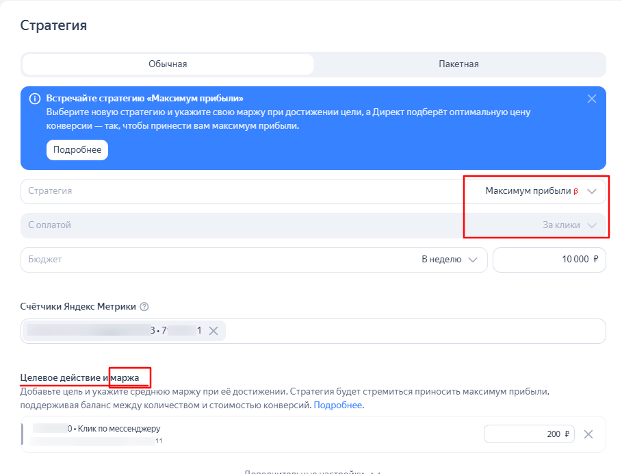 В случае с Директом все работает иначе: при расчете маржи расходы на рекламу не учитываются. Поэтому формула выглядит так: 5000 – (3800 – 300) = 1500 ₽. Именно это значение и используется в стратегии «Максимум прибыли».