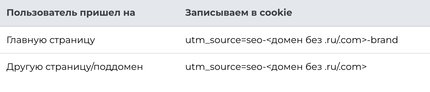 Если в referrer нет доменов из блока SEO, то нужно записать: