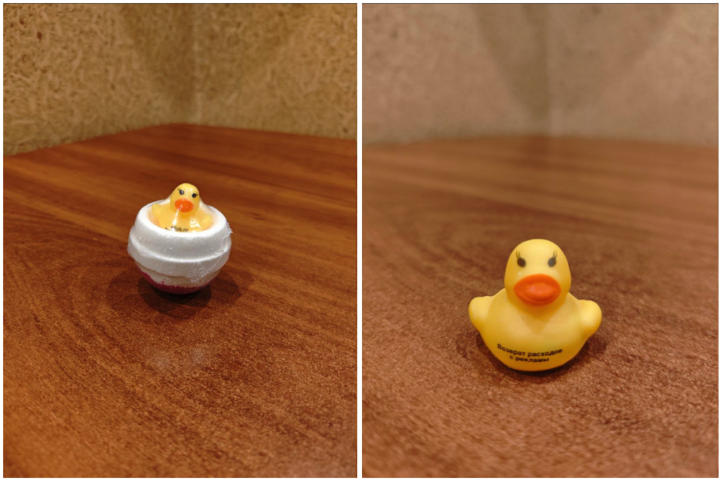 Тогда решили поступить иначе: разместить уточку сверху бомбочки. Заказали тестовый образец. Директор по маркетингу click.ru Николай Лобанов лично забрал его домой и пустил в «первое плавание». Эксперимент оказался провальным: бомбочка так сильно окрасила ванну, что ее пришлось срочно отмывать. Решили менять подрядчика.
