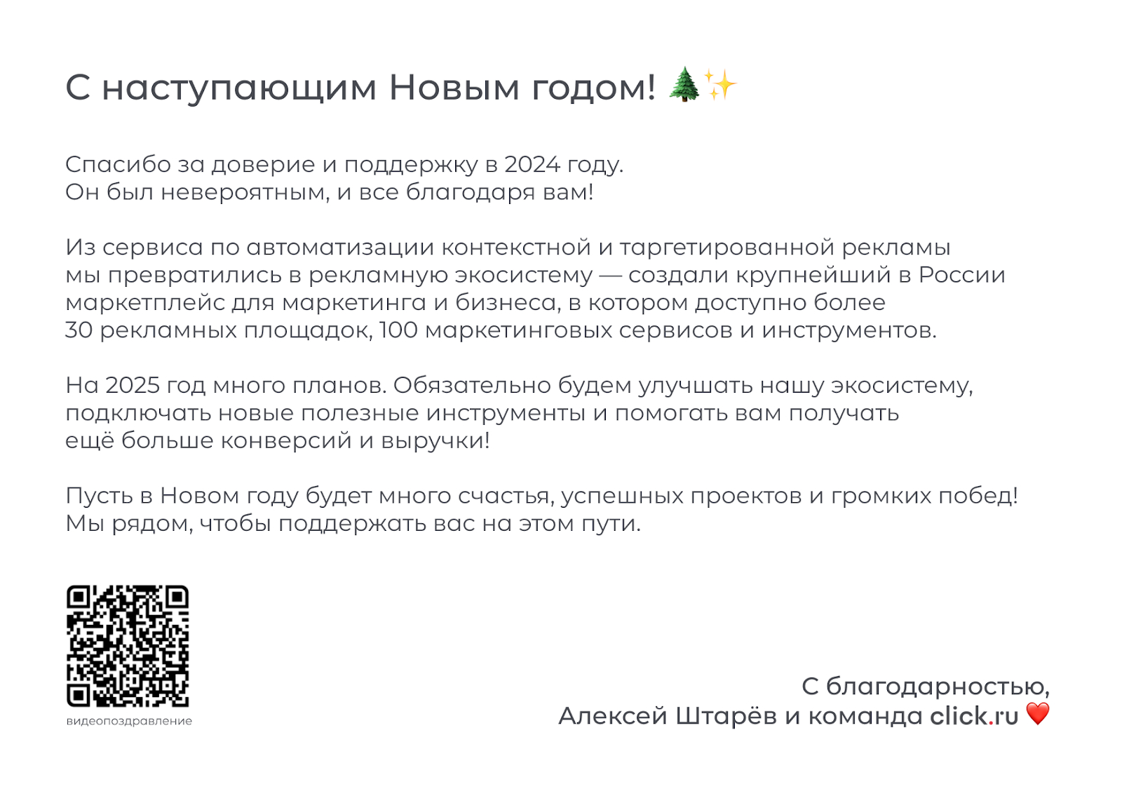 Так получился набор, который отражает главный принцип click.ru: мы помогаем не только расходовать бюджет, но и сохранять средства — прозрачно, спокойно и с пользой.
