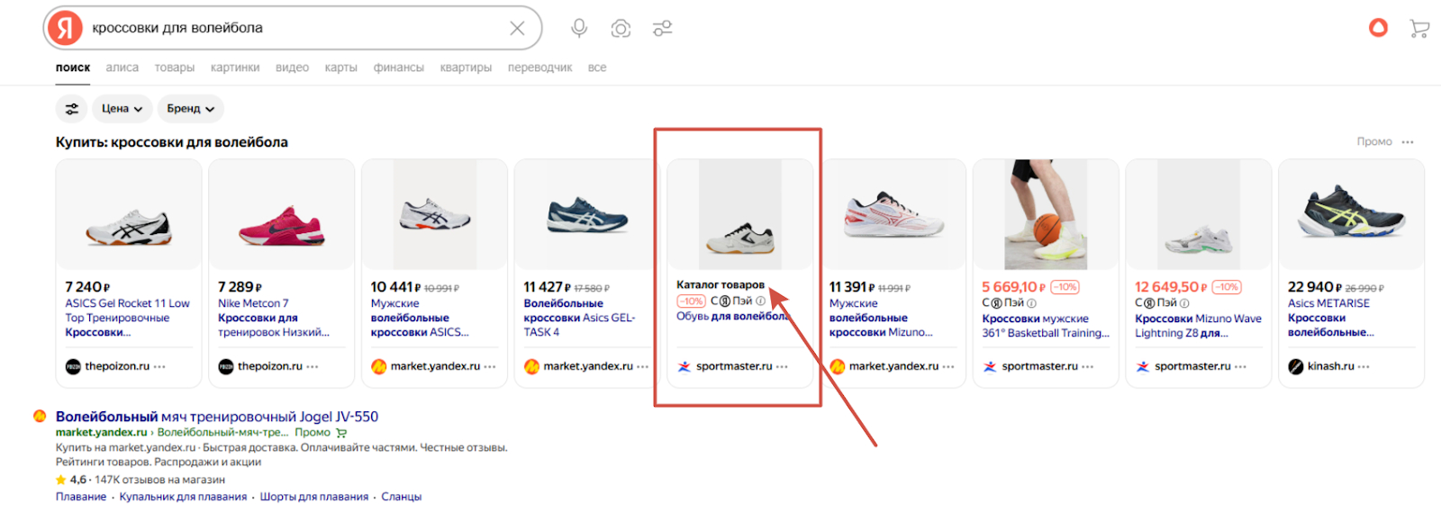 Например, человек ищет волейбольные кроссовки, и вы показываете ему каталог ваших кроссовок для волейбола, чтобы он смог выбрать подходящие.