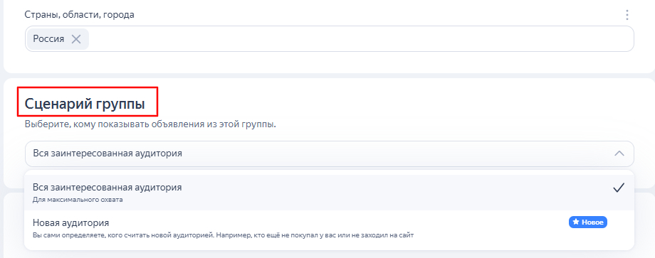 Стоит создавать две группы, нацеленные на разные аудитории, но с одинаковыми товарами. Особенное внимание желательно уделить сценарию «Новые покупатели». Он помогает увеличить продажи в ecom. Важно устанавливать цену целевых действий выше, чем в кампаниях на всю заинтересованную аудиторию. Если в рамках одной кампании вы и охватываете текущих клиентов, и привлекаете новых пользователей в отдельной группе, нужно задать повышающую корректировку на группу с новичками.