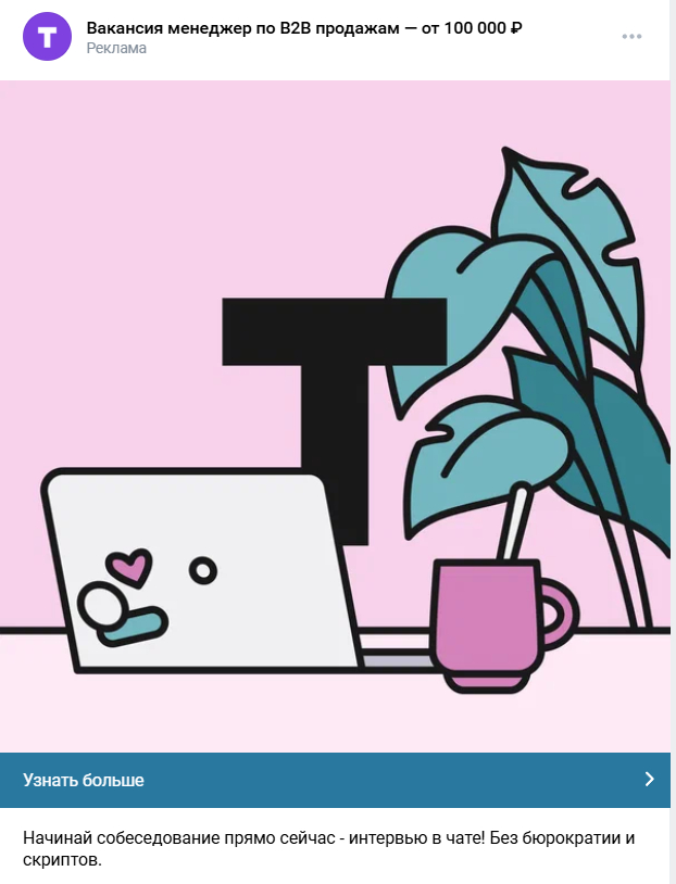 Если задача шире и включает развитие HR-бренда, аудиторию ведут в сообщества ВКонтакте или на лендинги с имиджевым контентом.