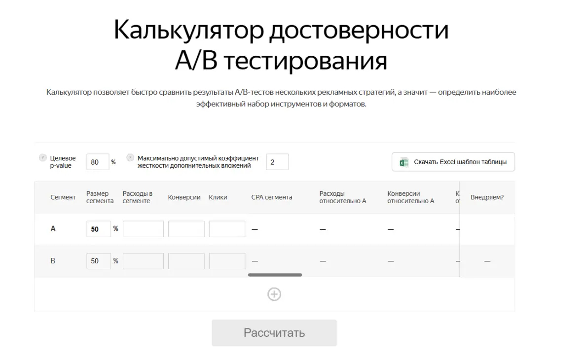 Чтобы не делать выводы на основе случайных колебаний, важно учитывать статистическую значимость. Для этого можно использовать специальные инструменты, например калькулятор достоверности тестирования от Яндекса. Они позволяют понять, достаточно ли данных для того, чтобы считать разницу между вариантами значимой.