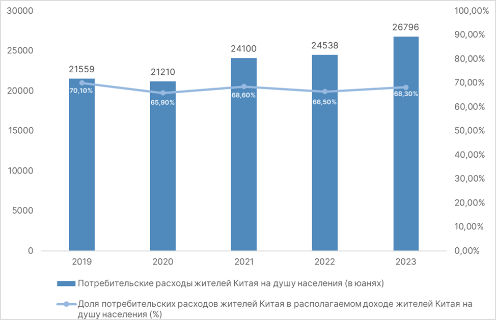Во многом позитив на потребительском рынке КНР, который наблюдался в стране в последние годы, был тесно связан с ростом потребительских расходов вслед за располагаемым доходом китайцев.