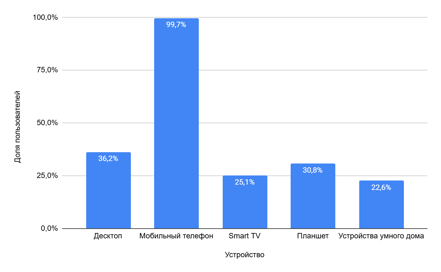 Структура использования устройств для доступа в интернет в КНР, % от общего количества интернет-пользователей. Источник: CNNIC.