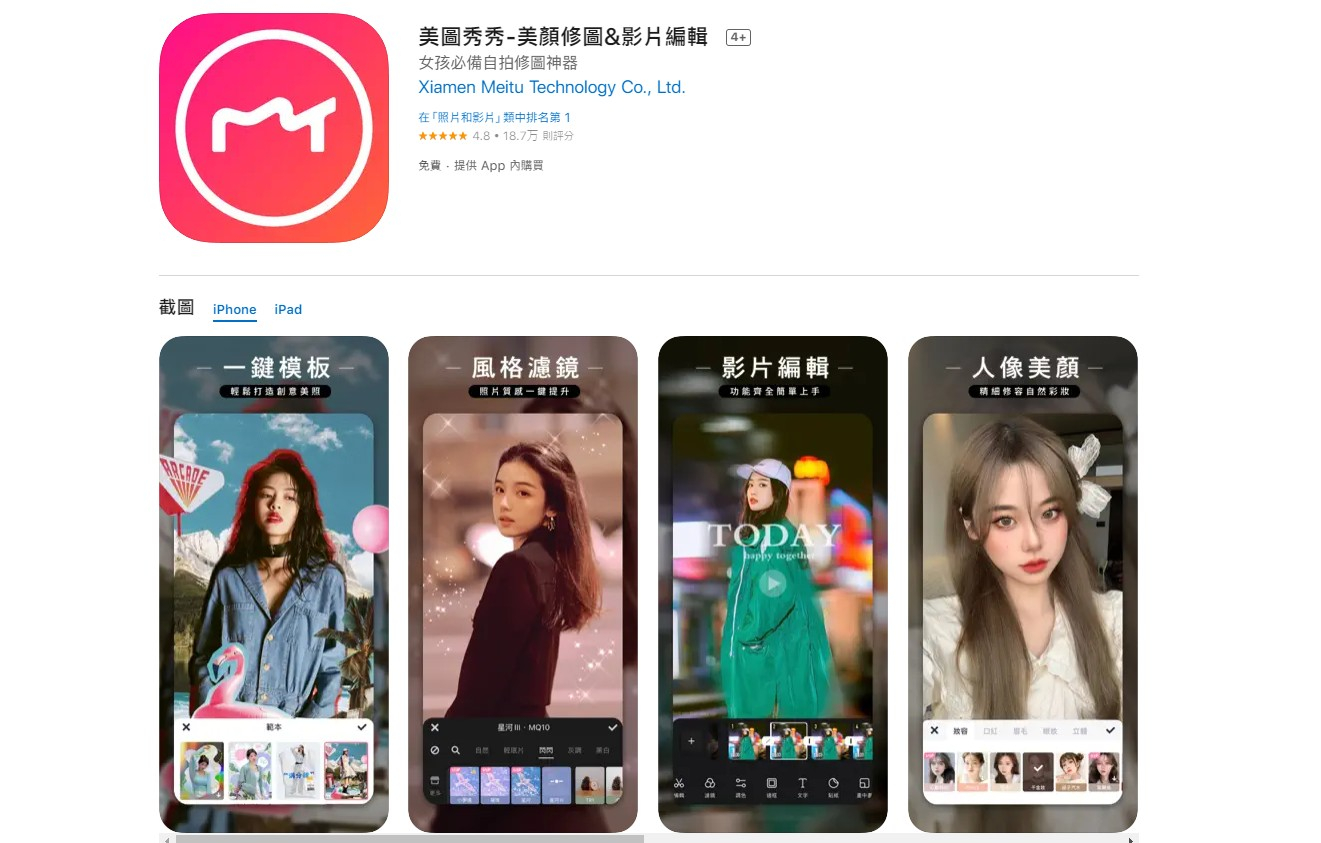Лидером «цифровой бьюти индустрии» можно назвать Meitu. Приложения Meitu Xiuxiu и Meiyan Camera предлагают пользователям самые современные AI-фильтры, которые не просто улучшают фото, а следуют актуальным трендам индустрии красоты.