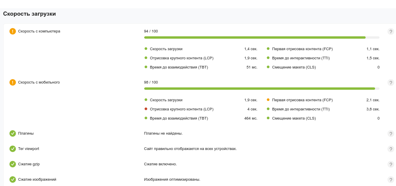В результате нам удалось увеличить скорость загрузки сайта, исправить адаптацию сайта под мобильные устройства и настроить кроссбраузерность.