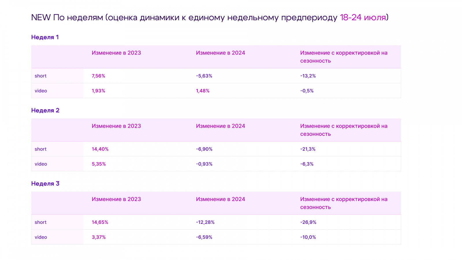 Чтобы учесть сезонность и влияние летних отпусков на просмотры, мы взяли аналогичные периоды в 2023 году, по которым определяли естественную динамику просмотров на YT.
