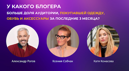 Предположите, у кого из блогеров больше аудитории, покупавшей одежду, обувь и аксессуары за последние три месяца?
