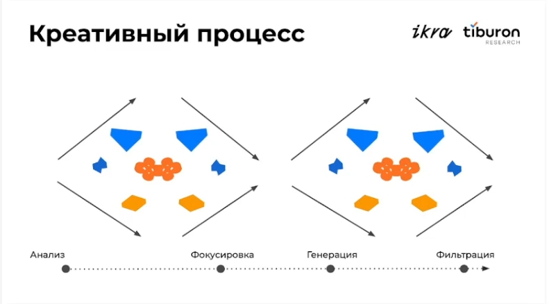У этого алгоритма есть весьма конкретные отображения в виде методологий креативного мышления. Например, мы в ИКРЕ рассказываем про шесть методологий (CRAFT, Jobs To Be Done, ТРИЗ, дизайн-мышление, латеральное мышление, ТОС). В каждой из них есть различные инструменты для каждого этапа. И когда вы понимаете, на каком этапе вы находитесь, и знаете, какие на этом этапе применимы инструменты, можете просто идти и придумывать, искать решения.
