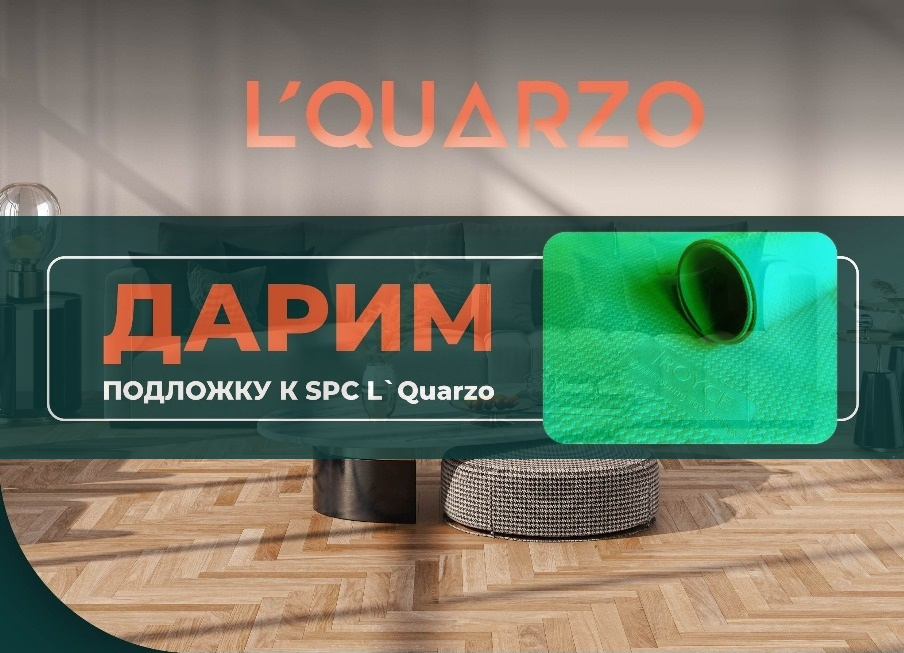 При покупке виниловой плитки LQuarzo коллекций Magia, Decorrido, Aciendo подложка Royce IXPE Green RIG2 в подарок!