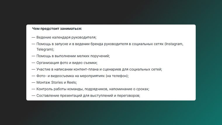 Сложнее всего работодателям определить круг обязанностей SMM-специалиста. В реальности оказывается, что один сотрудник совмещает роли SMM-менеджера, PR-специалиста, маркетолога, дизайнера, таргетолога и даже менеджера отдела продаж.
