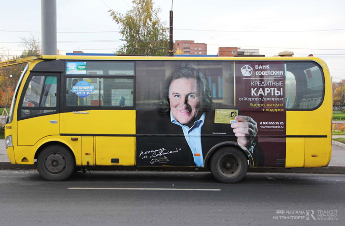 Но надо заметить, что у «звездной» рекламы в транзите есть большое преимущество. В отличие от журналов и ТВ, где знаменитости привычно сменяют друг друга, неожиданно выезжающий с соседней улицы Жерар Депардье величиной с автобус, конечно, обращает на себя внимание. Подобные проекты вызывают интерес, во многом благодаря уникальному контексту размещения – отсутствию вокруг другой рекламы такого же формата, и благодаря тому, что рекламоноситель находится в движении, а движущийся объект, как известно, привлекает в 5 раз больше внимания в сравнении со статичным.