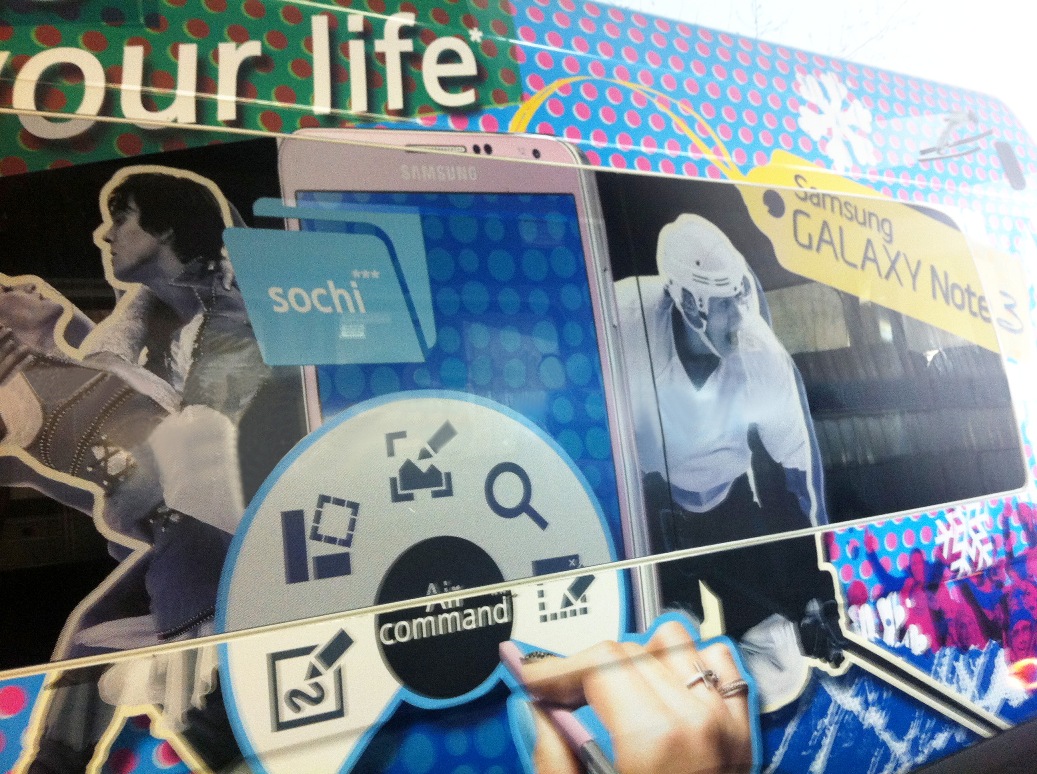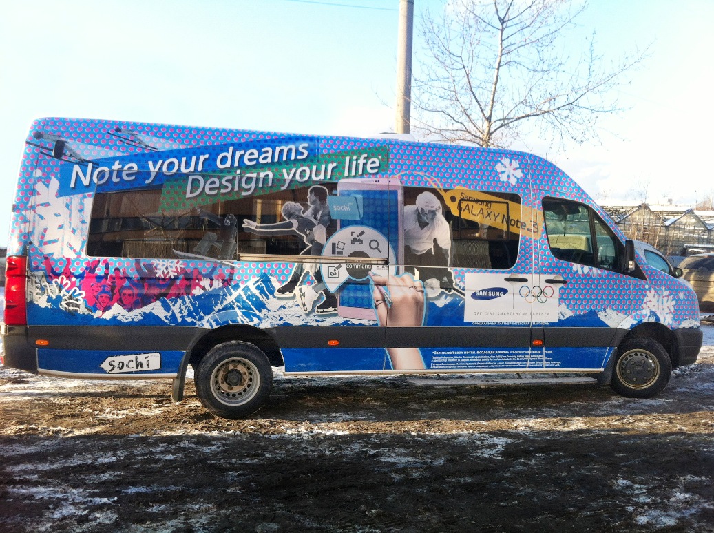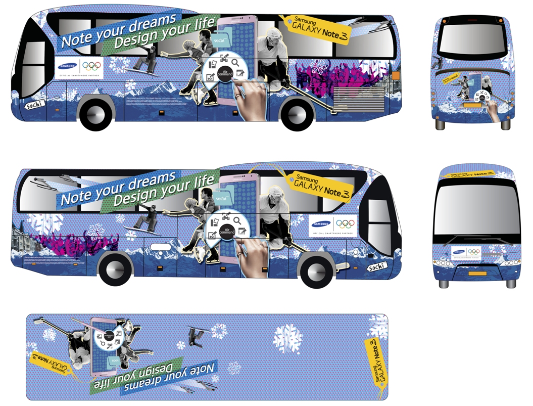 Автобусы для спонсора зимней Олимпиады 2014, компании Samsung, с полным брендированием всех четерых бортов и даже крыши - уже отправились на этой неделе для обслуживания XXII Олимпийских игр в Сочи.