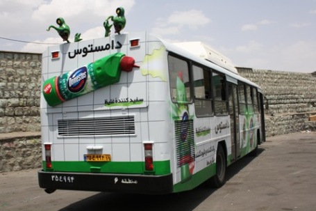 Агентство Point Of View (Тегеран, Иран) разработало неоднозначную транзитную рекламную кампанию в поддержку бренда Domestos (продукция UNILEVER), разместив на автобусе, помимо привычного винила, экстендеры (упаковку с чистящим средством и пару фирменных вредителей) и вопрос «Вы бы сели в этот автобус?».