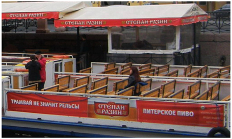 Развитие проекта не стоит на месте: сегодня «реклама на воде» – это целый комплекс возможностей по кросс-промоушену и BTL. «Применение комплексного подхода укрепляет путь потребителя к продукту и статус компании, – говорит Светлана Косарева, руководитель отдела по работе с корпоративными клиентами «062-Реклама». Одним из постоянных рекламодателей, для которого был составлен первый «водный медиа-микс на Неве», стала «Балтика»: рекламное сообщение размещалось на всех видах носителей – на причале у Эрмитажа, теплоходах «Метеор» и «Москва», на пассажирских билетах. В обязательном порядке продукция пивоваренной компании была представлена в барах кораблей и в ассортименте кафе на причале».