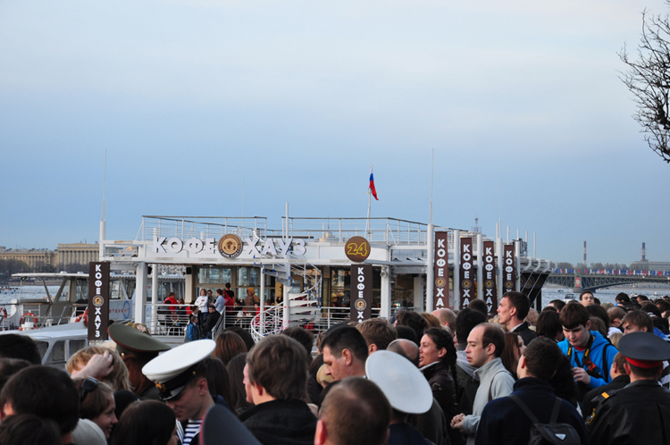 Наиболее заметным и обсуждаемым проектом в Санкт-Петербурге можно назвать размещение рекламы и организацию кофеен сети «Кофе Хауз» на двух причалах в центре Петербурга: на Дворцовой набережной у Эрмитажа и у Медного всадника.